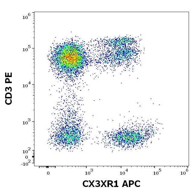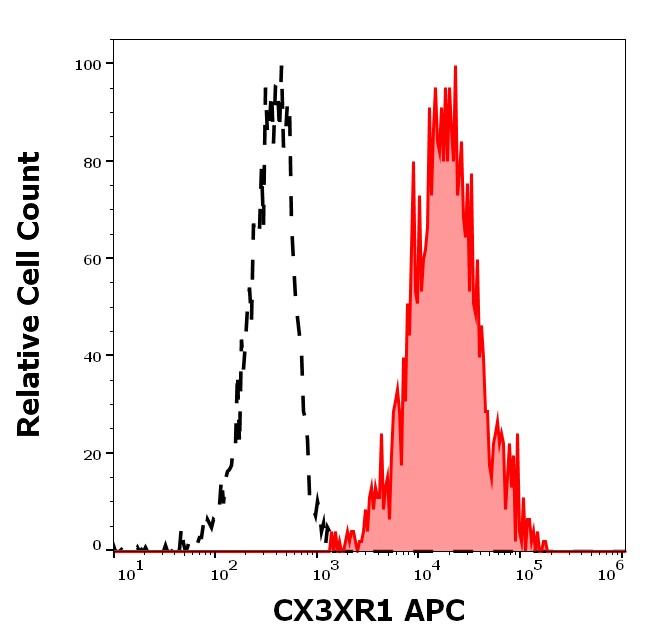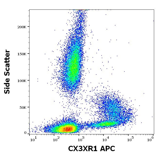 The 2A9-1 clone is a highly specific monoclonal antibody that recognizes human CX3CR1 with excellent binding characteristics and minimal background staining. This antibody is widely used in flow cytometry for phenotyping monocyte and macrophage subsets. It is particularly important in cardiovascular disease research, neuroinflammation studies, and cancer research where CX3CR1-positive cells play roles in disease progression and immune surveillance.