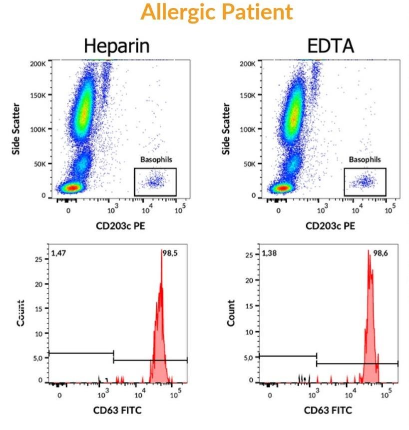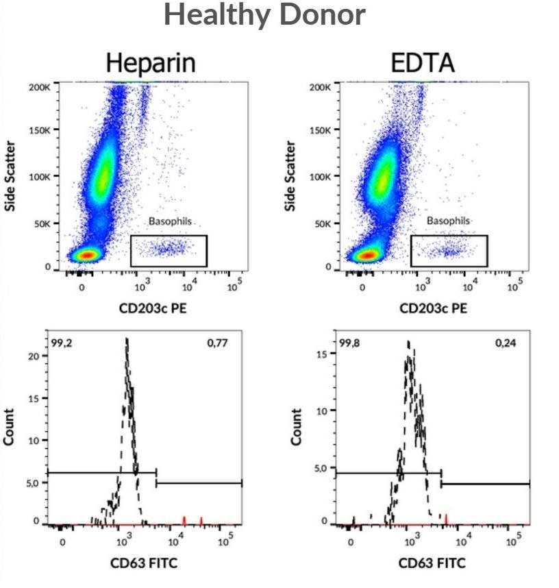 Furthermore, the data confirm that the BasoFlowEx Kit delivers consistent and reliable performance across both heparinanticoagulated and EDTA-anticoagulated whole blood samples, maintaining excellent assay sensitivity and specificity in both matrices.