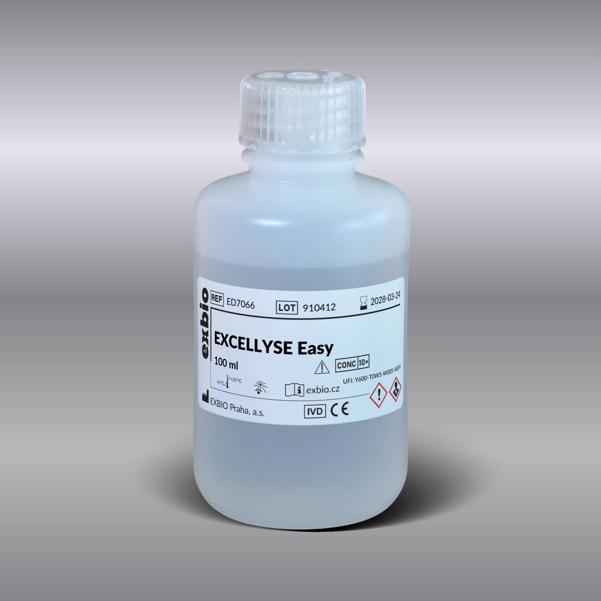 The EXCELLYSE Easy 100 ml lysing solution is intended for red blood cell lysis following antibody staining of human peripheral blood leukocytes. The lysing solution is appropriate for use with EXBIO single colour monoclonal antibodies and KOMBITEST reagents and can be used in both lyse/wash and lyse/no wash protocol.