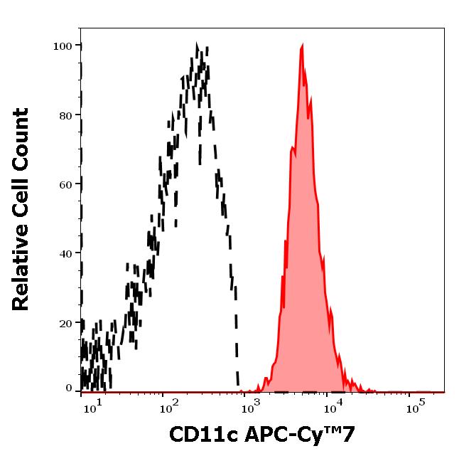 Example of separation of positive (red-filled) and negative (black-dashed) events using SingleFlowEx CD11c APC-Cy™7