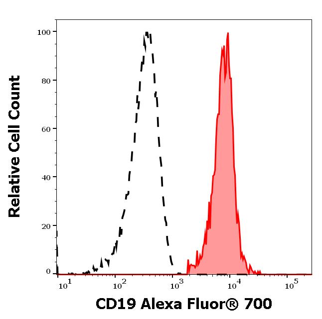 Example of separation of positive (red-filled) and negative (black-dashed) events using SingleFlowEx CD19 Alexa Fluor® 700