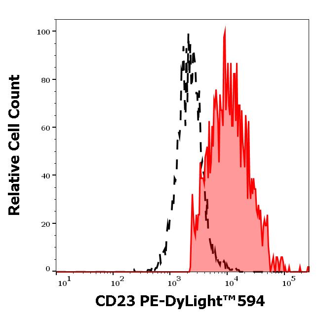 Example of separation of positive (red-filled) and negative (black-dashed) events using SingleFlowEx CD23 PE-DyLight™ 594