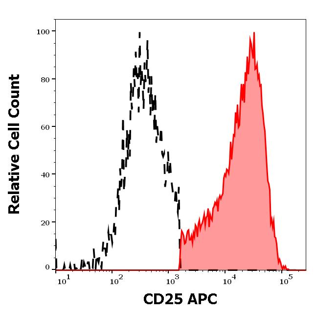 Example of separation of positive (red-filled) and negative (black-dashed) events using SingleFlowEx CD25 APC