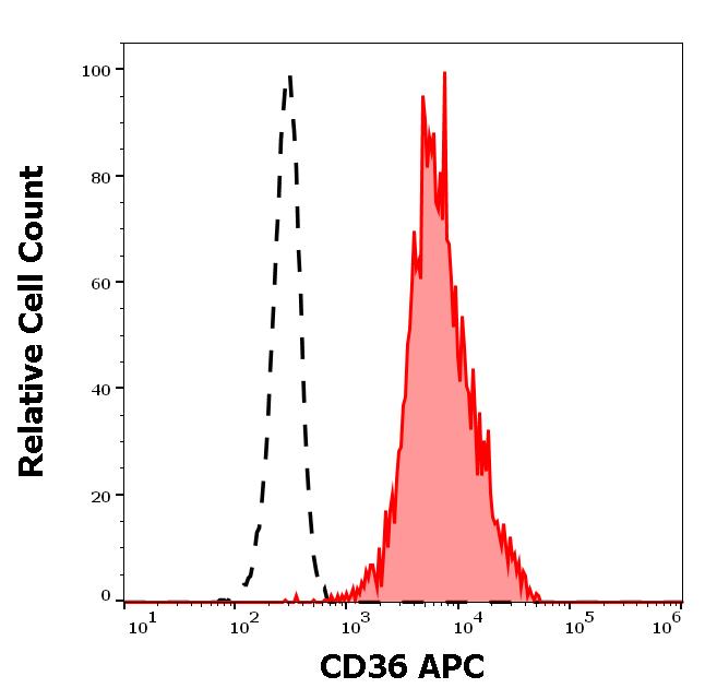Example of separation of positive (red-filled) and negative (black-dashed) events using SingleFlowEx CD36 APC