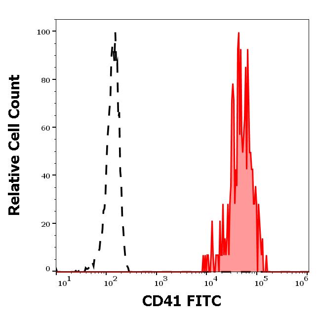 Example of separation of positive (red-filled) and negative (black-dashed) events using SingleFlowEx CD41 FITC