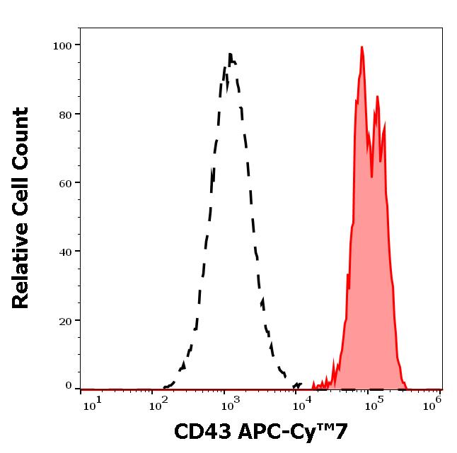 Example of separation of positive (red-filled) and negative (black-dashed) events using SingleFlowEx CD43 APC-Cy™7