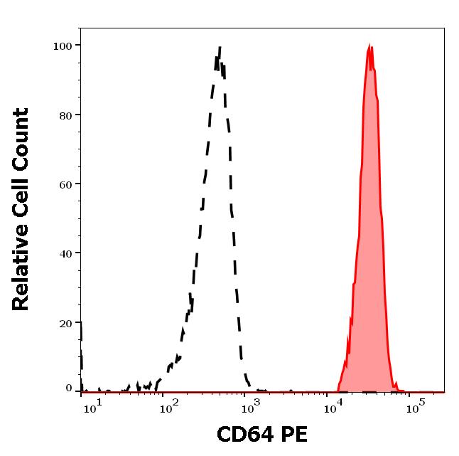 Example of separation of positive (red-filled) and negative (black-dashed) events using SingleFlowEx CD64 PE