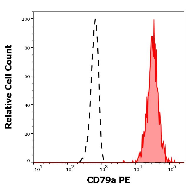 Example of separation of positive (red-filled) and negative (black-dashed) events using SingleFlowEx CD79a PE