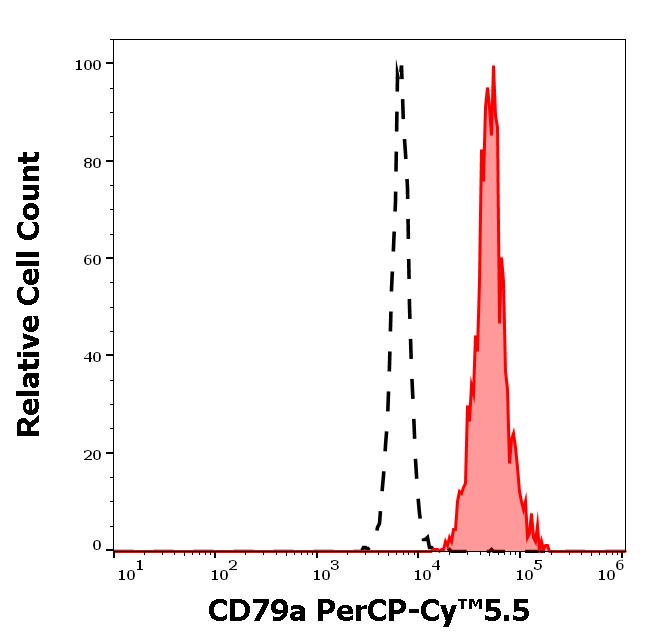 Example of separation of positive (red-filled) and negative (black-dashed) events using SingleFlowEx CD79a PerCP-Cy™5.5