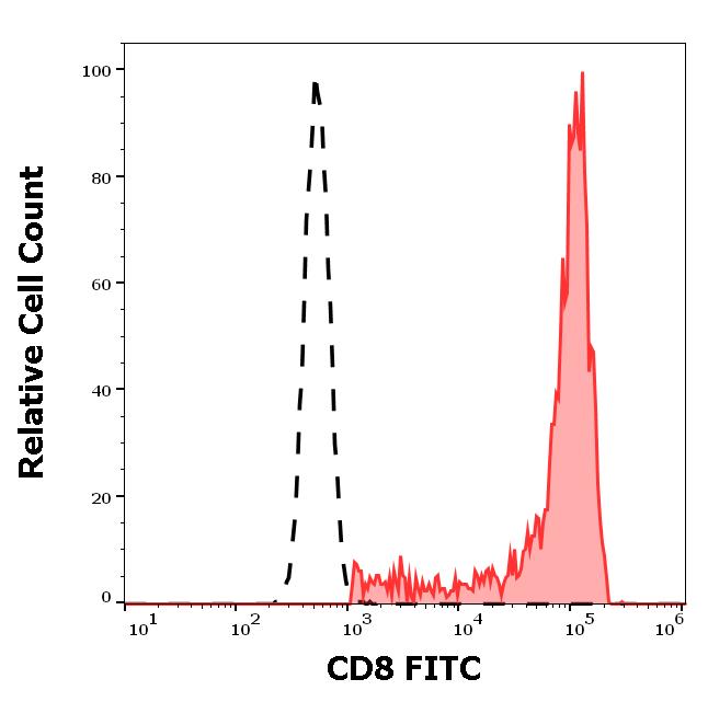 Example of separation of positive (red-filled) and negative (black-dashed) events using SingleFlowEx CD8 FITC