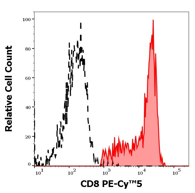 Example of separation of positive (red-filled) and negative (black-dashed) events using SingleFlowEx CD8 PE-Cy™5