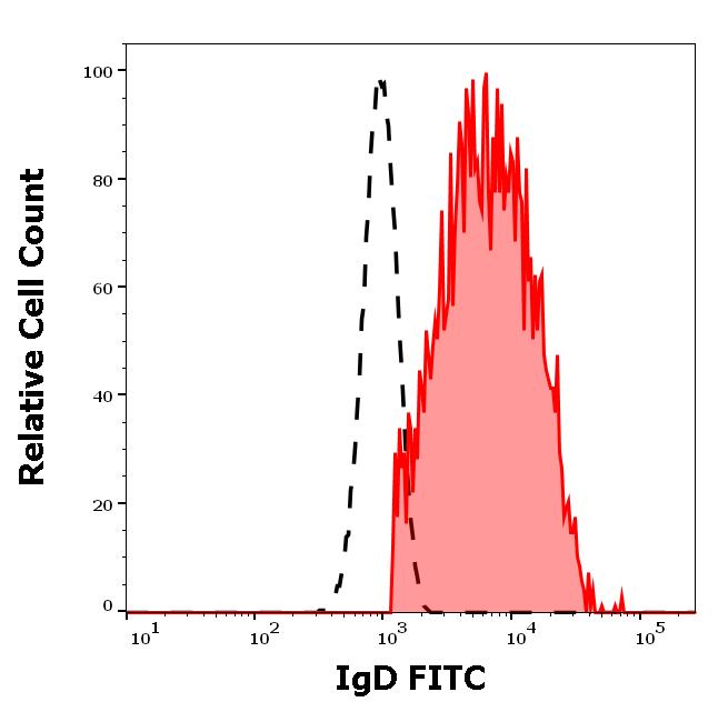 Example of separation of positive (red-filled) and negative (black-dashed) events using SingleFlowEx IgD FITC