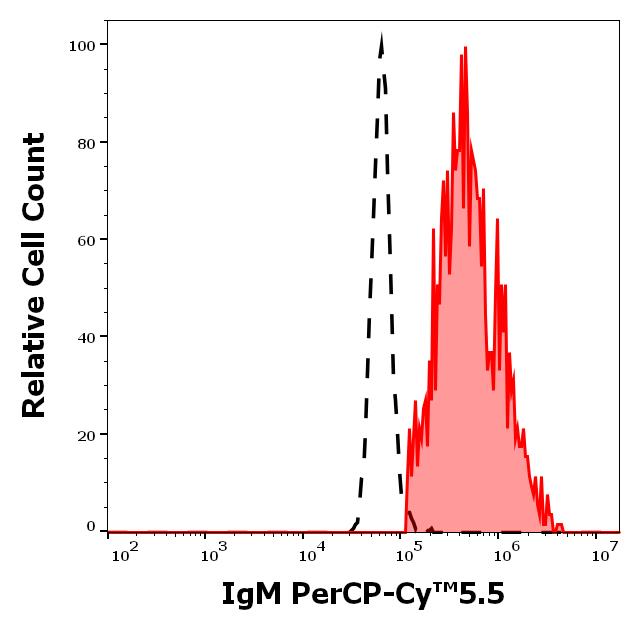 Example of separation of positive (red-filled) and negative (black-dashed) events using SingleFlowEx IgM PerCP-Cy™5.5