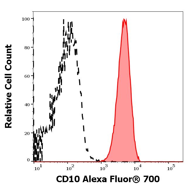 Example of separation of positive (red-filled) and negative (black-dashed) events using SingleFlowEx CD10 Alexa Fluor® 700