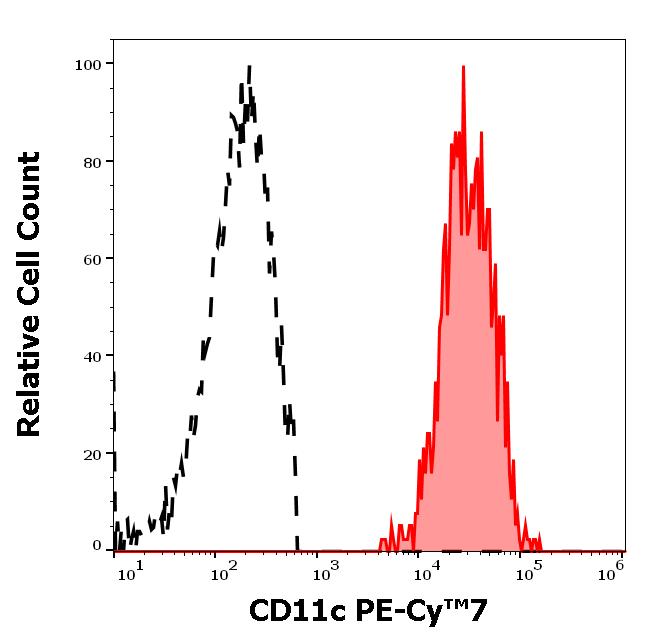 Example of separation of positive (red-filled) and negative (black-dashed) events using SingleFlowEx CD11c PE-Cy™7