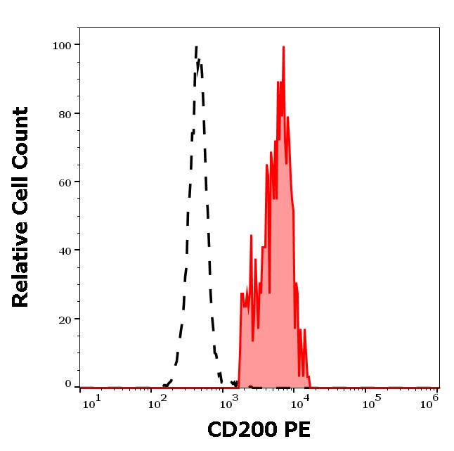 Example of separation of positive (red-filled) and negative (black-dashed) events using SingleFlowEx CD200 PE
