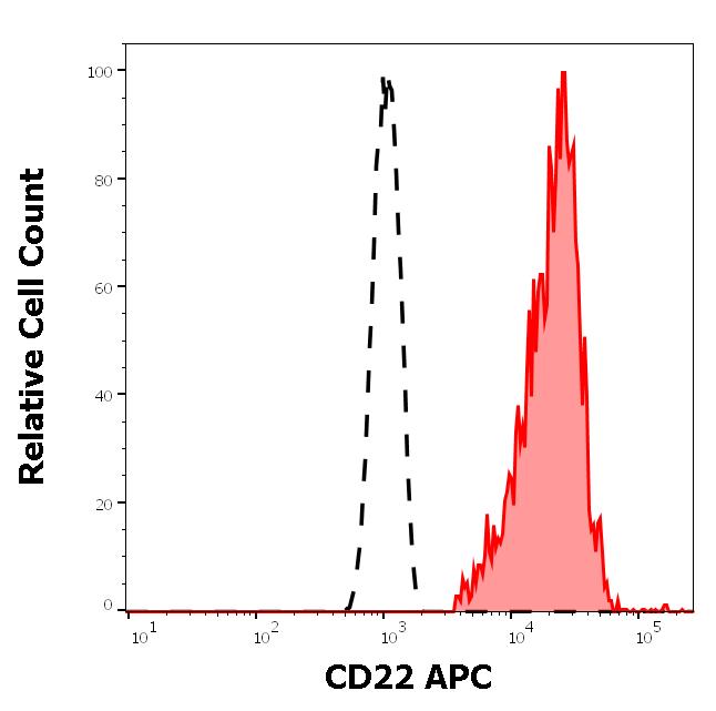 Example of separation of positive (red-filled) and negative (black-dashed) events using SingleFlowEx CD22 APC