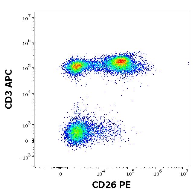 Graphic display: gated CD45 positive lymphocytes displayed as SingleFlowEx CD26 PE versus CD3 APC