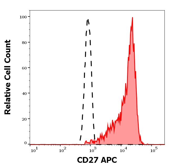 Example of separation of positive (red-filled) and negative (black-dashed) events using SingleFlowEx CD27 APC