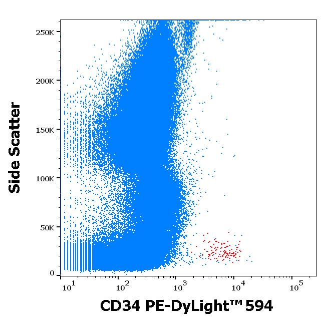 Example of separation of positive (red-filled) and negative (black-dashed) events using SingleFlowEx CD34 PE-DyLight™ 594