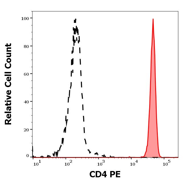 Example of separation of positive (red-filled) and negative (black-dashed) events using SingleFlowEx CD4 PE
