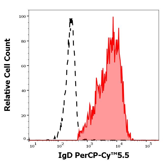 Example of separation of positive (red-filled) and negative (black-dashed) events using SingleFlowEx IgD PerCP-Cy™5.5