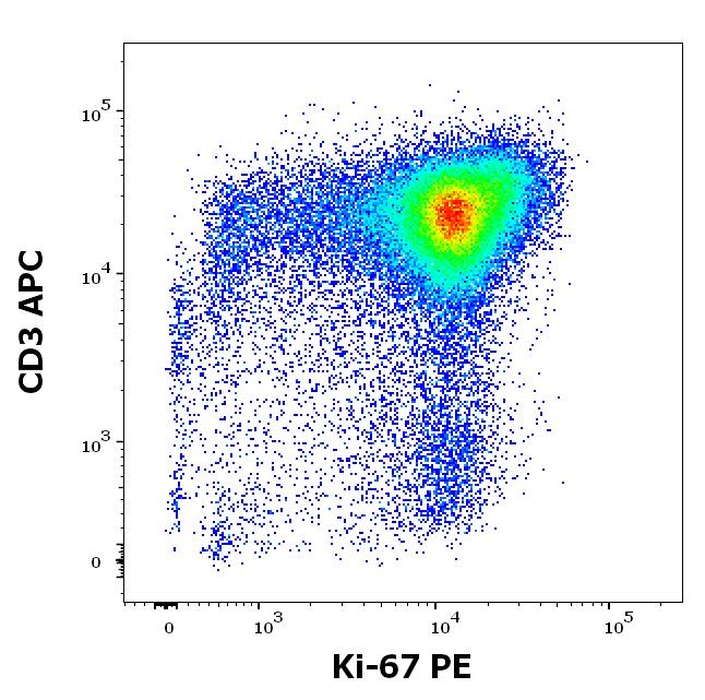 Graphic display: gated CD45 positive lymphocytes as SingleFlowEx Ki-67 PE versus CD3 APC