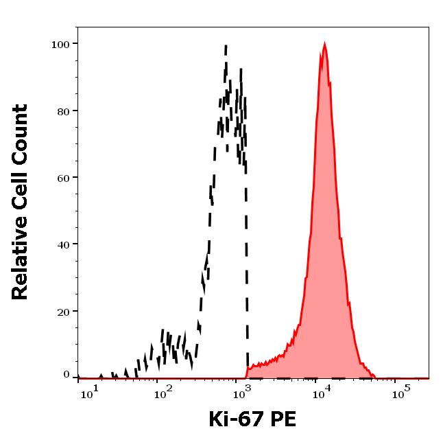 Example of separation of positive (red-filled) and negative (black-dashed) events using SingleFlowEx Ki-67 PE