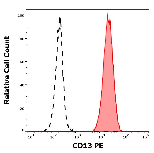 Example of separation of positive (red-filled) and negative (black-dashed) events using SingleFlowEx CD13 PE