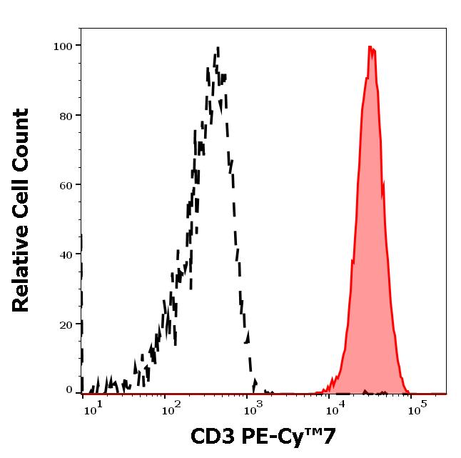 Example of separation of positive (red-filled) and negative (black-dashed) events using SingleFlowEx CD3 PE-Cy™7
