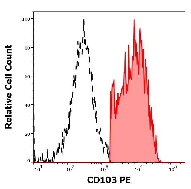 Example of separation of positive (red-filled) and negative (black-dashed) events using SingleFlowEx CD103 PE