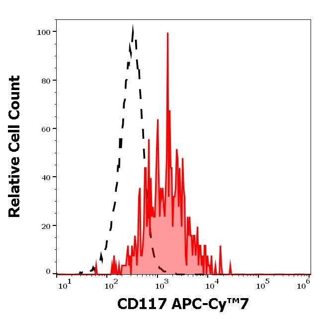 Example of separation of positive (red-filled) and negative (black-dashed) events using SingleFlowEx CD117 APC-Cy™7