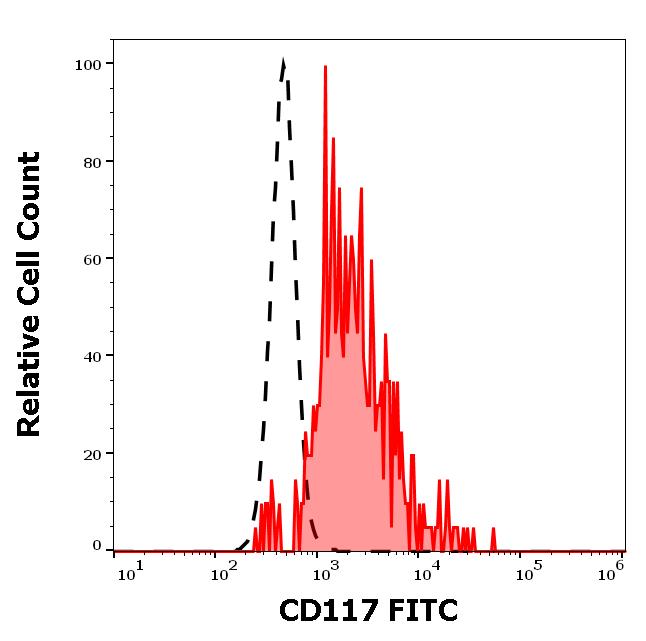 Example of separation of positive (red-filled) and negative (black-dashed) events using SingleFlowEx CD117 FITC