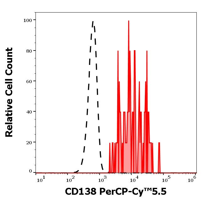 Example of separation of positive (red-filled) and negative (black-dashed) events using SingleFlowEx CD138 PerCP-Cy™5.5