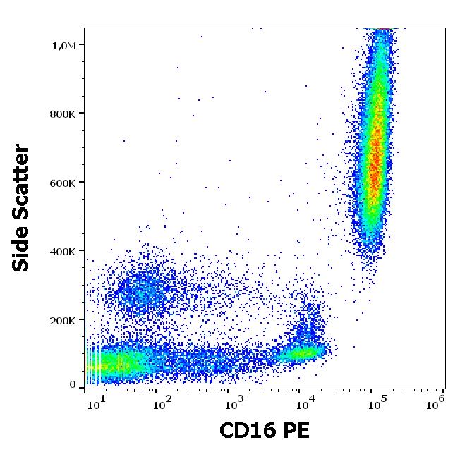 Example of surface staining pattern using SingleFlowEx CD16 PE