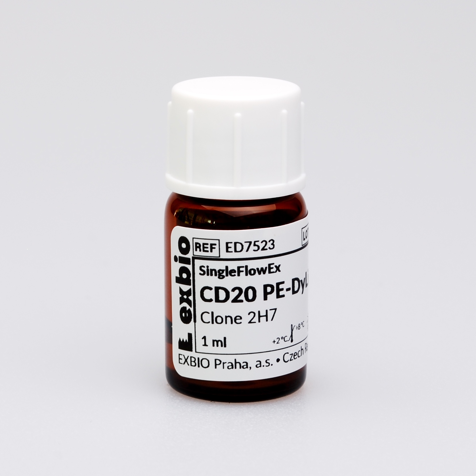 Example of surface staining pattern using SingleFlowEx CD20 PE-DyLight™ 594