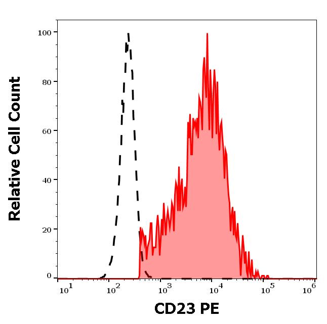 Example of separation of positive (red-filled) and negative (black-dashed) events using SingleFlowEx CD23 PE