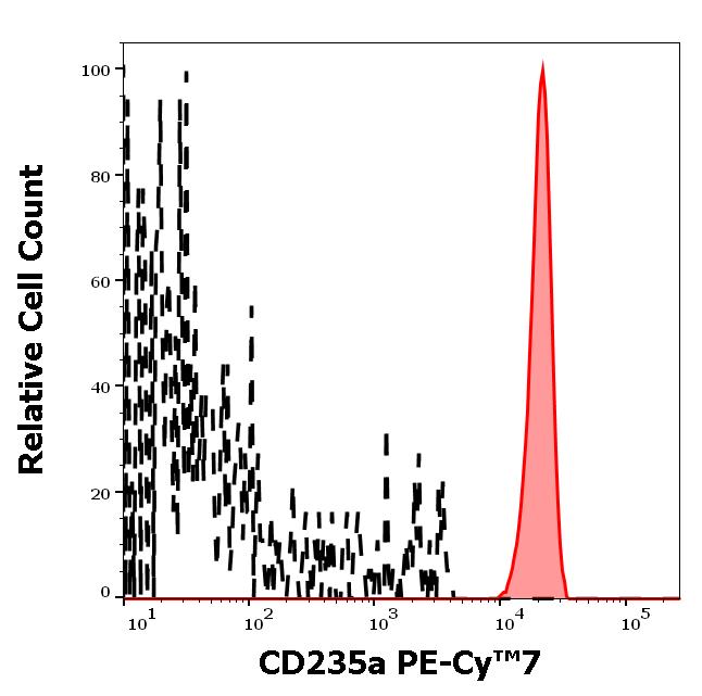 Example of separation of positive (red-filled) and negative (black-dashed) events using SingleFlowEx CD235a PE-Cy™7