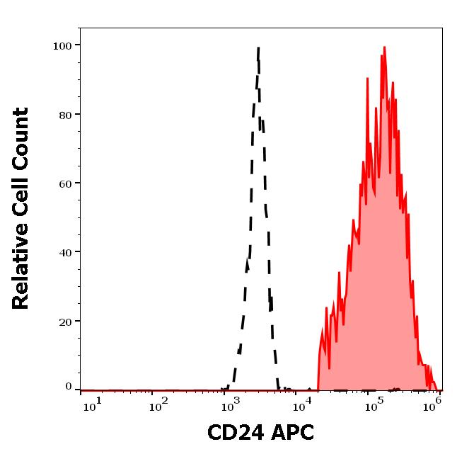 Example of separation of positive (red-filled) and negative (black-dashed) events using SingleFlowEx CD24 APC