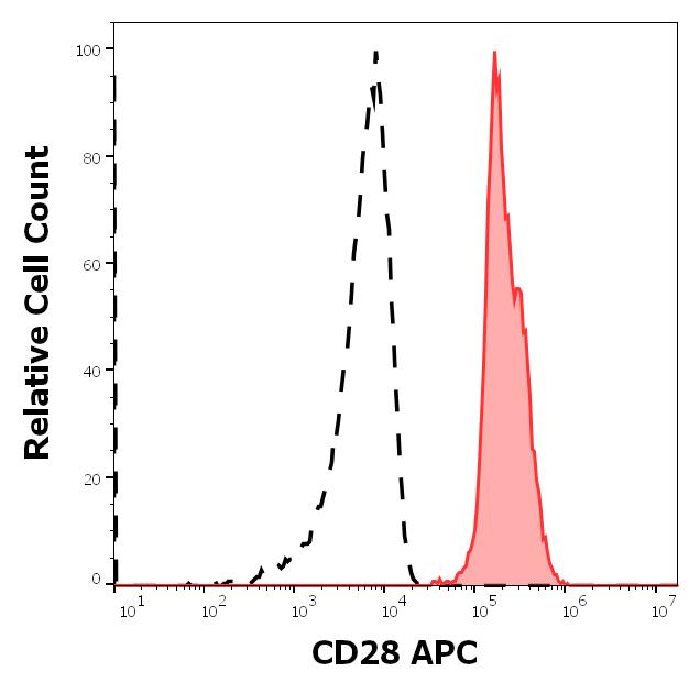 Example of separation of positive (red-filled) and negative (black-dashed) events using SingleFlowEx CD28 APC