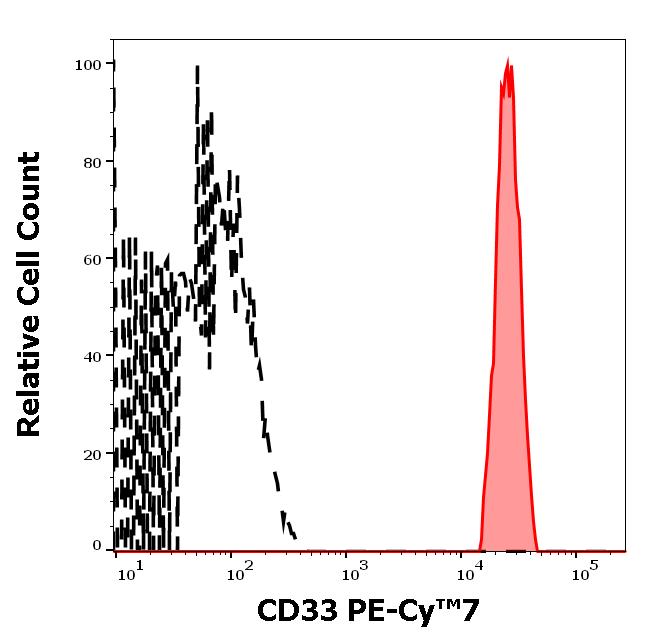 Example of separation of positive (red-filled) and negative (black-dashed) events using SingleFlowEx CD33 PE-Cy™7