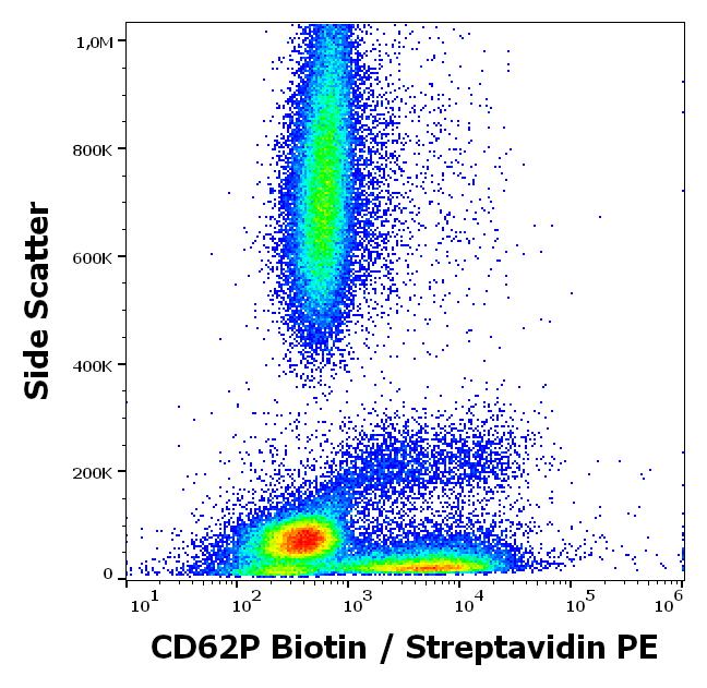 Example of surface staining pattern using SingleFlowEx CD62P Biotin in combination with Streptavidin PE