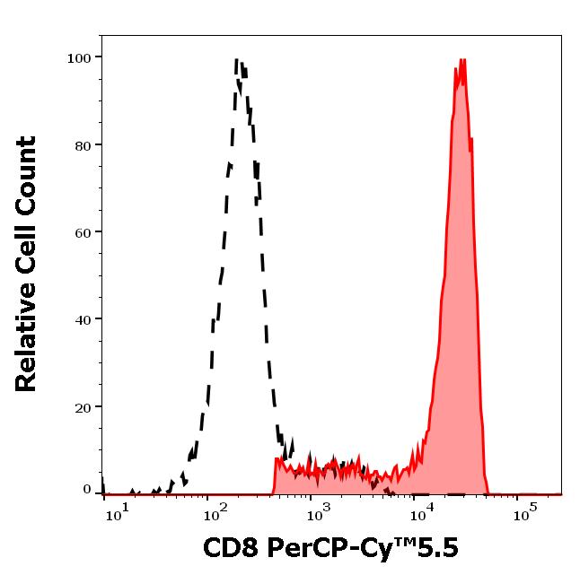 Example of separation of positive (red-filled) and negative (black-dashed) events using SingleFlowEx CD8 PerCP-Cy™5.5