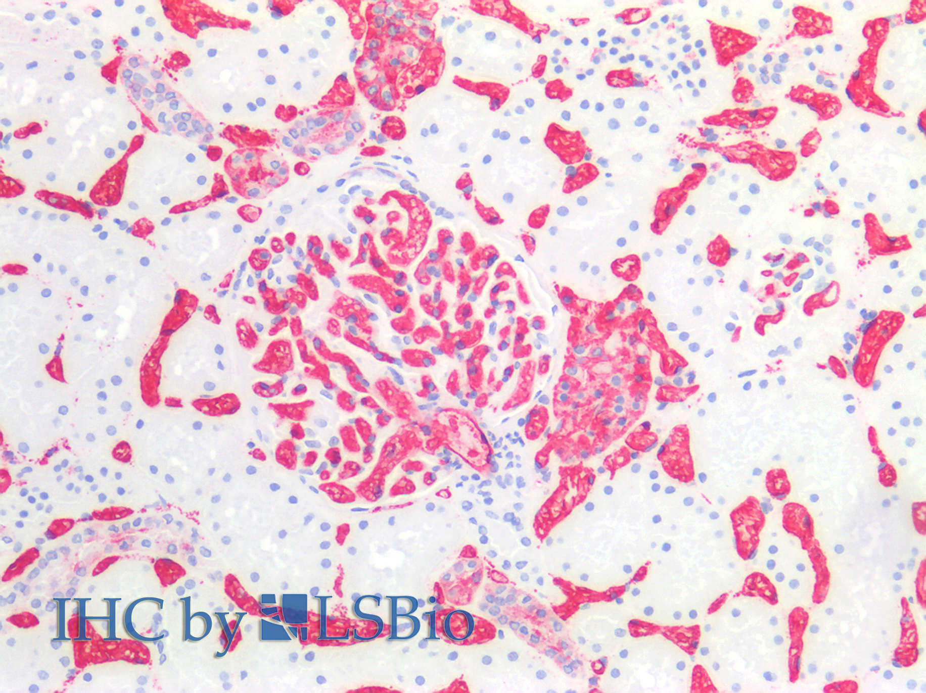 Immunohistochemistry staining of human kidney (paraffin-embedded sections) with anti-blood group A (HE-193), dilution 1:50. Commercially tested by LifeSpan BioSciences.
