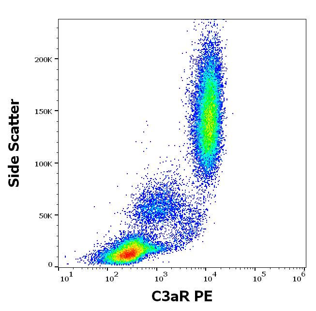 Flow cytometry surface staining pattern of human peripheral whole blood stained using anti-human C3aR (HC3aRZ8) PE antibody (10 μl reagent / 100 μl of peripheral whole blood).