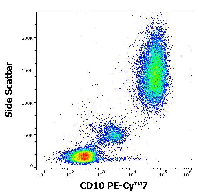 Flow cytometry surface staining pattern of human peripheral whole blood stained using anti-human CD10 (MEM-78) PE-Cy™7 antibody (4 μl reagent / 100 μl of peripheral whole blood).