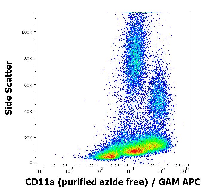 Flow cytometry surface staining pattern of human peripheral whole blood stained using anti-human CD11a (MEM-25) purified antibody (azide free, concentration in sample 1 μg/ml) GAM APC.