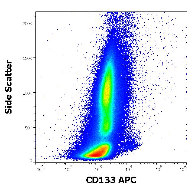 Flow cytometry surface staining pattern of human bone marrow cells stained using anti-human CD133 CD133 (W6B3C1) APC antibody (10 μl reagent per milion cells in 100 μl of cell suspension).