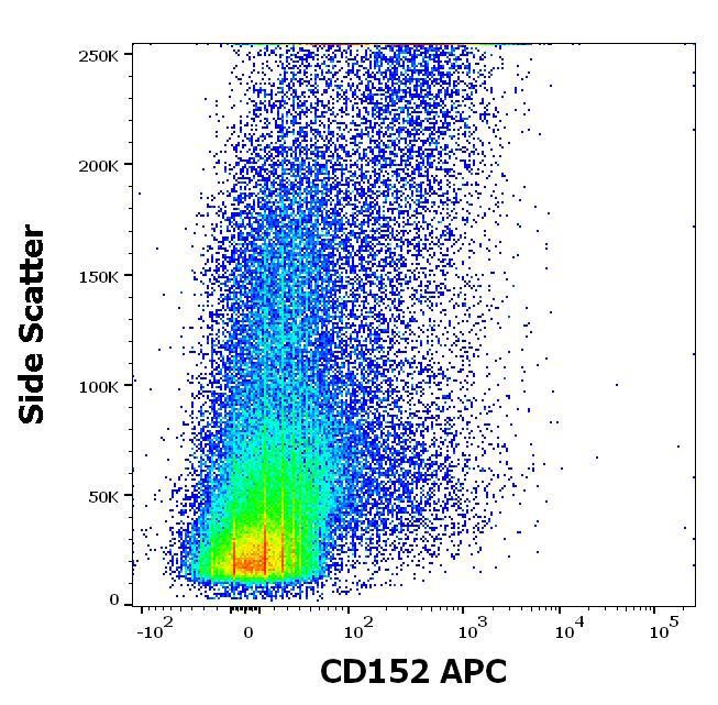 Flow cytometry surface staining pattern of human PHA stimulated peripheral whole blood stained using anti-human CD152 (BNI3) APC antibody (10 μl reagent / 100 μl of peripheral whole blood).