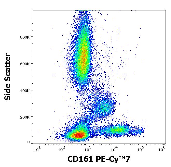 Flow cytometry surface staining pattern of human peripheral whole blood stained using anti-human CD161 (HP-3G10) PE-Cy™7 antibody (4 μl reagent / 100 μl of peripheral whole blood).